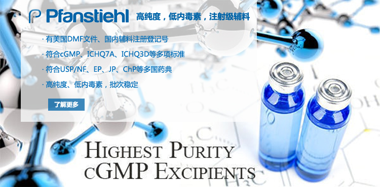 “熱烈祝賀Pfanstiehl的注射級甘氨酸Glycine(G-140)喜獲CDE登記號F20250000403, 這是Pfanstiehl產品獲得的第18個CDE登記號!”甘氨酸在醫藥輔料制劑中應用廣泛,, 可作為緩沖劑,增溶劑,穩定劑等,具有諸多優勢。Pfanstiehl秉承一貫高品質理念,為滿足全球生物制藥行業對于高品質甘氨酸的需求,隆重推出的注射級甘氨酸Glycine (G-140), 具有超高純度,超低內毒素,超低金屬殘留的特點,單獨檢測29種金屬離子,并且新增DNA,RNA,DNA酶,RNA酶和脂肪酶,亞硝酸鹽等多項質量指標的檢測,符合多國藥典規定(USP, EP, BP, JPE, ChP),可用于生物治療性藥物和疫苗的生產。產品信息:· 產品名稱:Glycine, High Purity, Low Endotoxin, Low Metals, USP, EP, BP, JPE, ChP (G-140)· 中文名稱:甘氨酸· 分子式:C2H5NO2· 分子量:75.07 g / mol· CAS號:56-40-6· 產品貨號:G-140產品特點: · 超高純度,超低內毒素,超低微生物含量,超低金屬雜質殘留· 質量指標新增DNA,RNA,DNA酶,RNA酶,脂肪酶和亞硝酸鹽檢測· 符合多國藥典:USP, EP, BP, JPE, ChP· 符合ICH Q3D標準· 符合GMP標準· 已獲DMF和CDE登記號 產品應用:· 緩沖劑· 穩定劑· 增溶劑如果您對Pfanstiehl注射級別Glycine G-140感興趣,歡迎聯系Pfanstiehl 中國區代理商北京西美杰科技有限公司獲得如下詳細的產品概況說明文件和測試樣品。Pfanstiehl Inc.最新產品系列如下,歡迎聯系北京西美杰科技有限公司獲取100g裝免費樣品。北京西美杰科技有限公司為Pfanstiehl中國代理,為客戶提供完善的技術支持與售后服務。歡迎撥打西美杰客服電話400-050-4006或者登陸網站www_xmjsci_com.zxdb999.com了解更多信息。 更多>